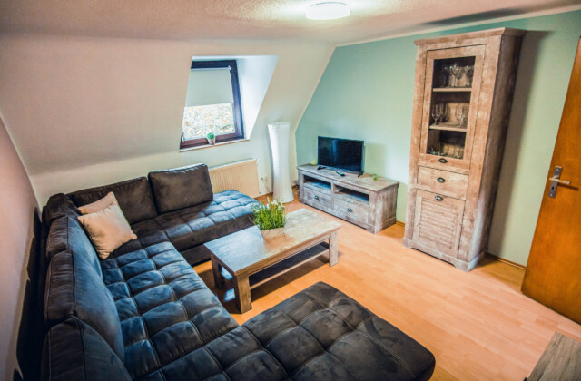 Schlafzimmer 1: 1 große Schlafcouch (2 Personen), Fernseher, Hifi-Anlage